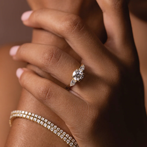 1.3 CT Marquise Three Stone Lab Grown Diamond Engagement Ring