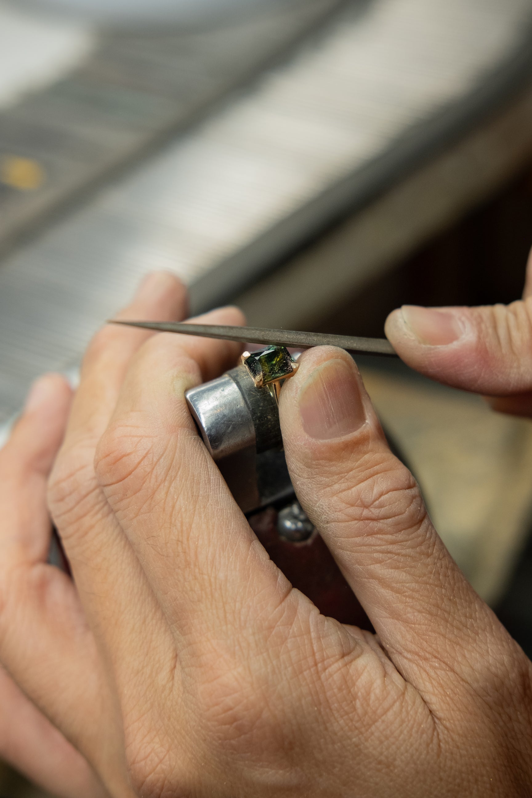 We have built a team of close-knit artisans who share her devotion to high craftsmanship and love of executing intricate designs with precision. We make jewelry ourselves, from cast cleaning to stone setting to final polish, and engagement rings are our specialty. Our team comprises only exceptional jewelers because our complex designs demand it. Our jewelers train for years to achieve master jeweler status, learning our proprietary techniques for delicate bands, hidden diamonds, and leveled accents one step at a time.