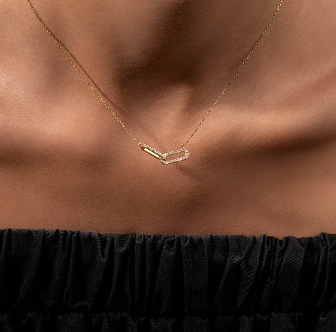 The Necklace Shown in the Picture Features a Stunning 0.4 CT Round Cut Stone.