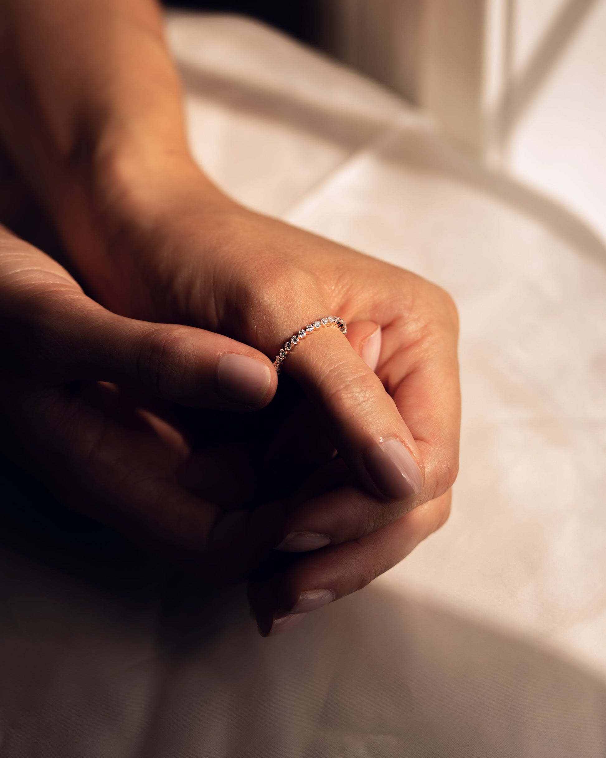 ✦ The Band Shown in the Picture Holds Beautiful 0.06 CT Round Lab Grown Diamond .