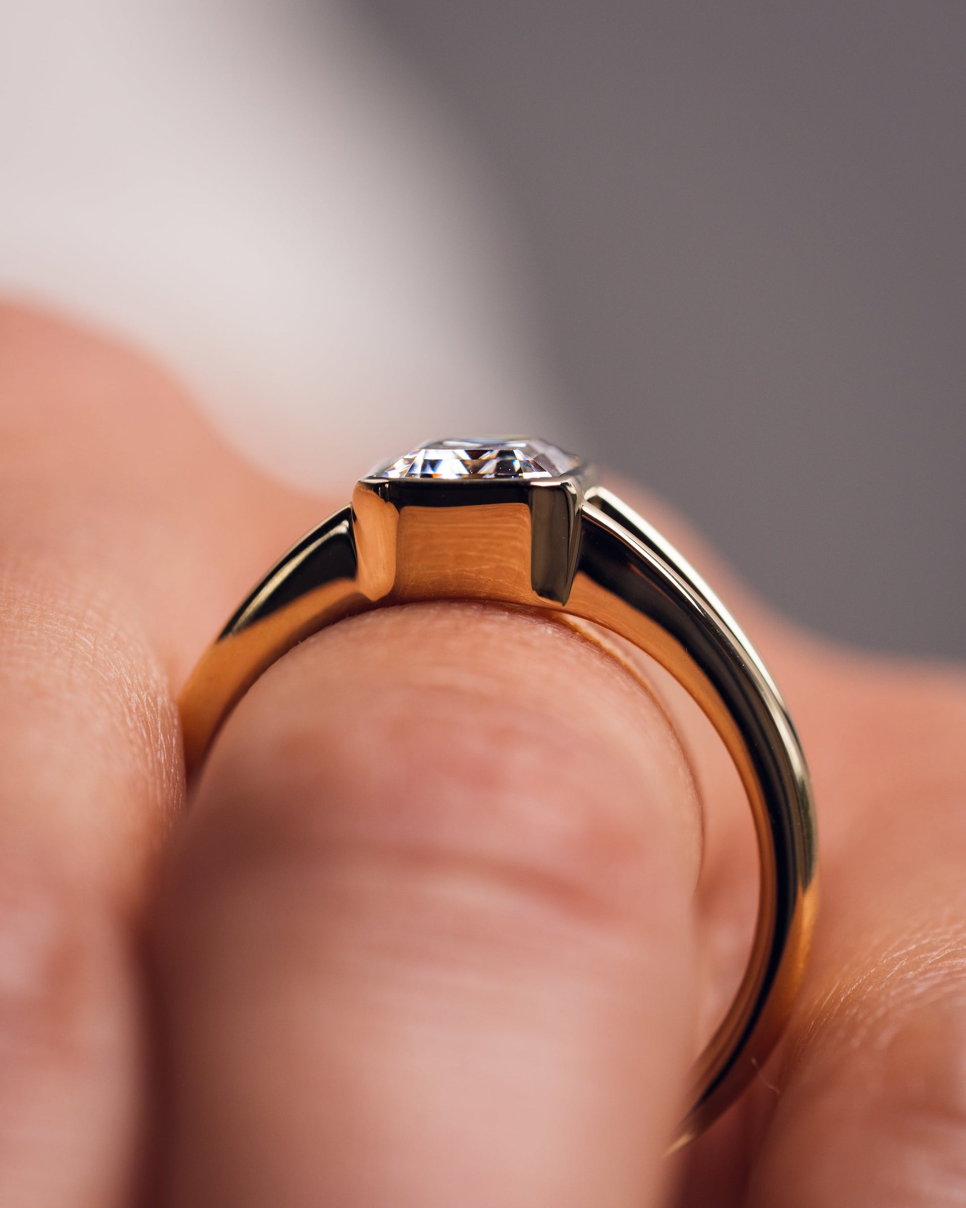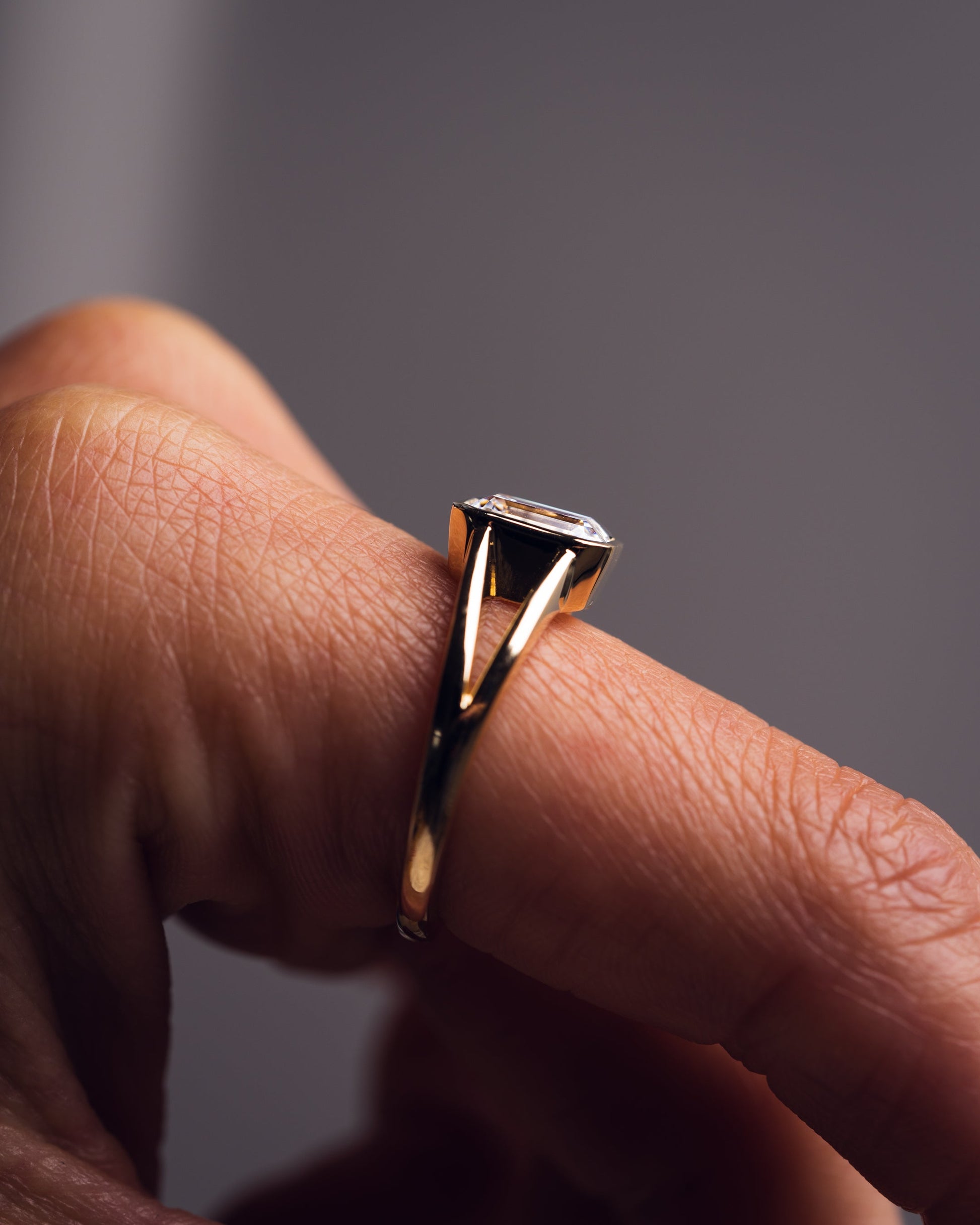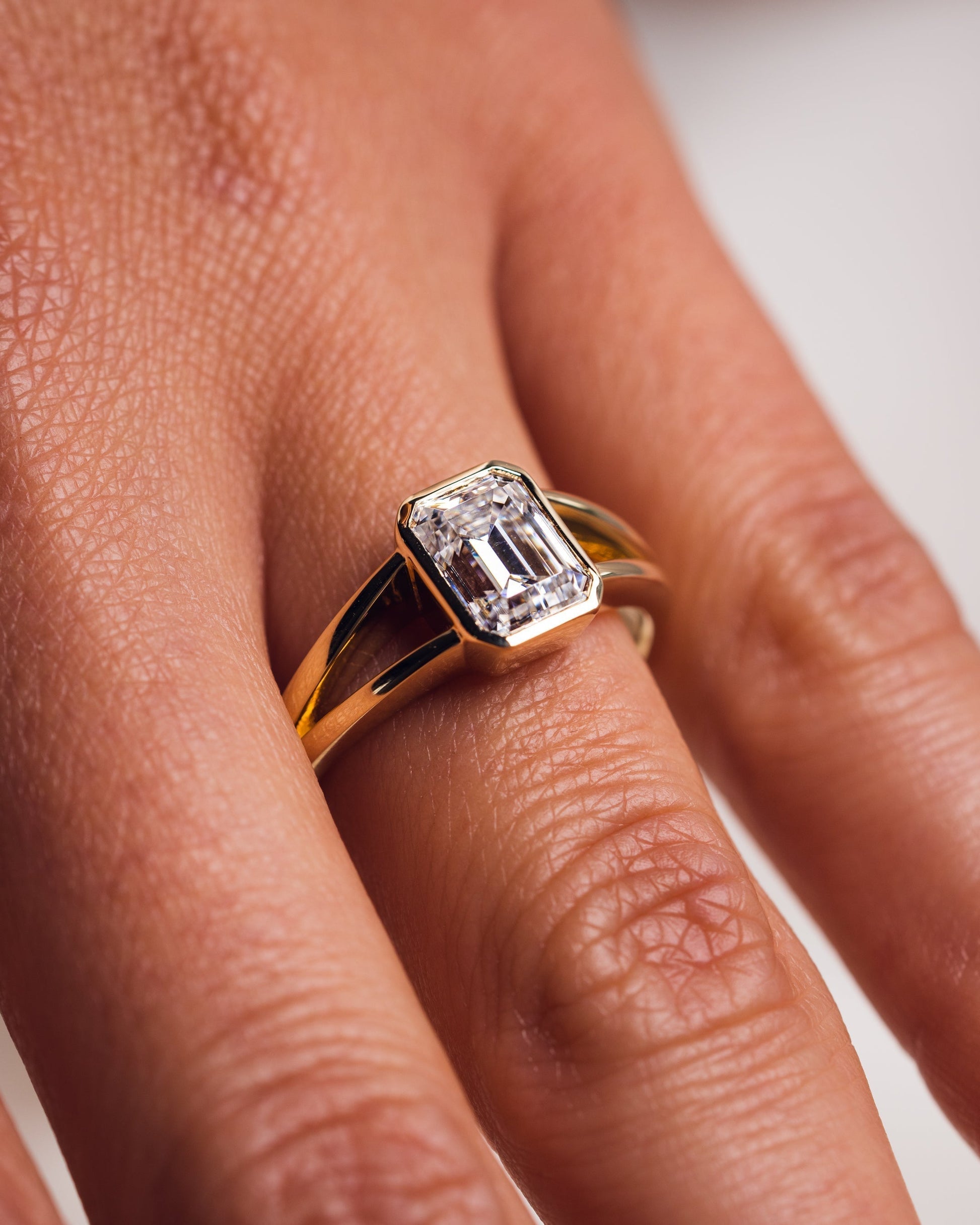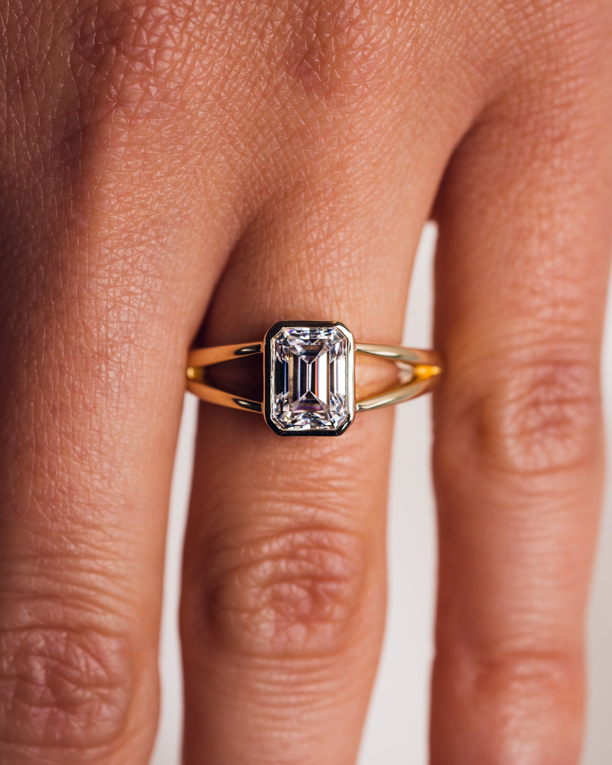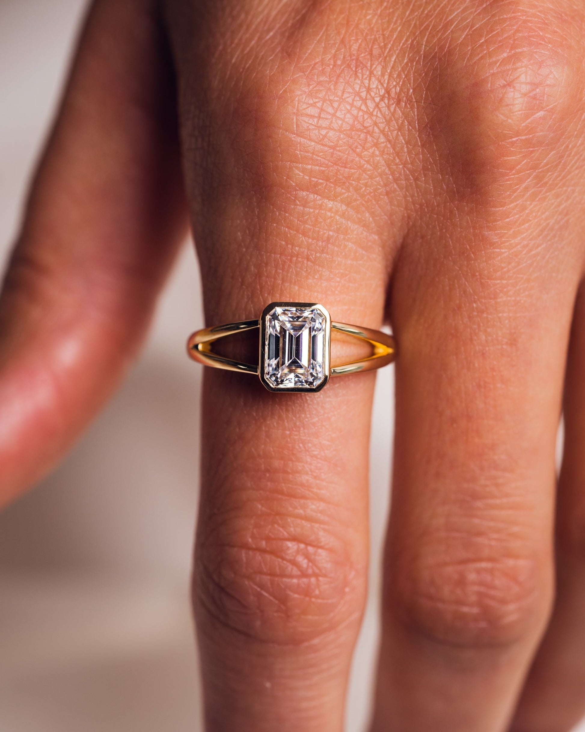 1.6 CT Emerald Bezel Solitaire Split Shank Style Lab Grown Diamond Engagement Ring