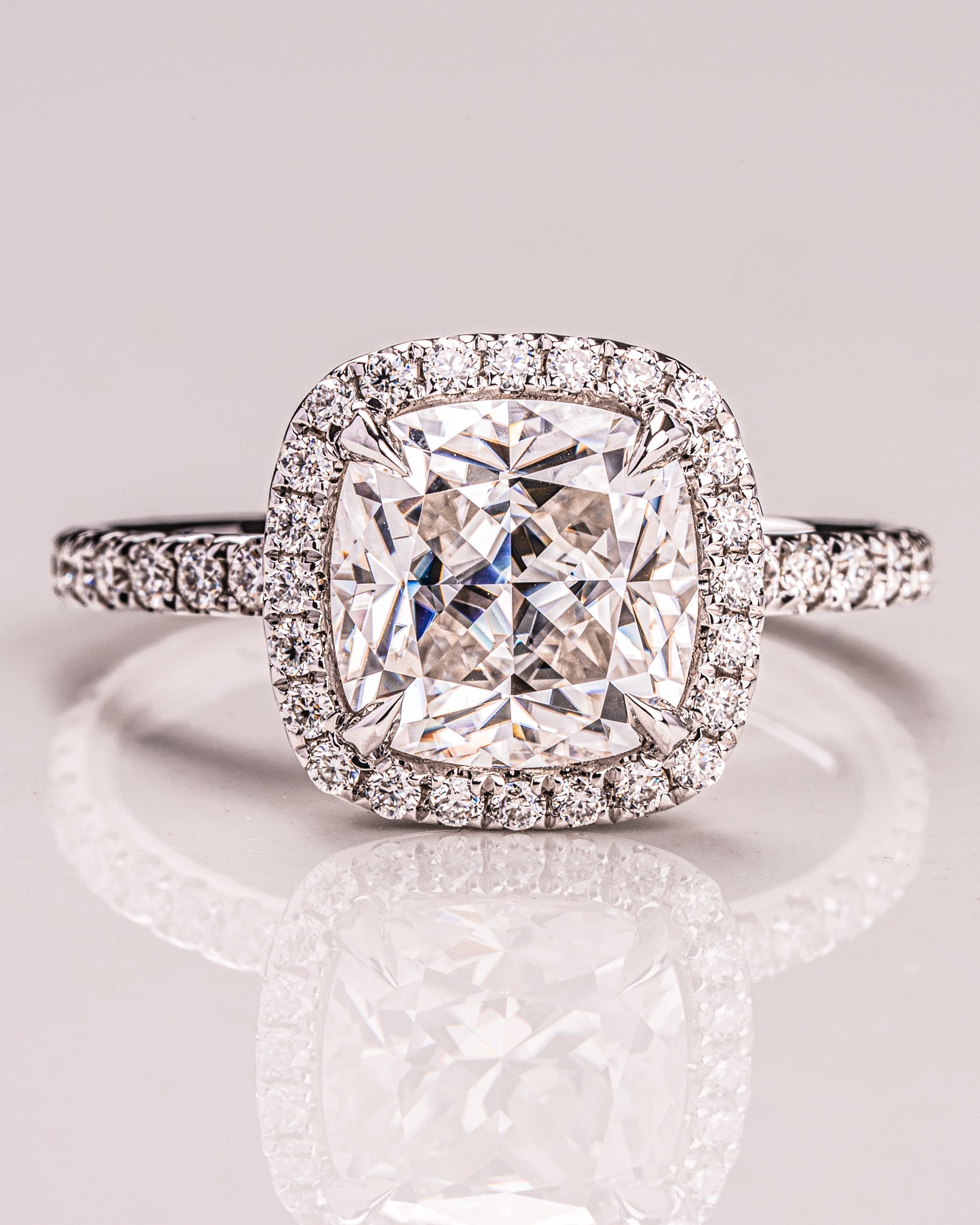 1.80 CT Cushion Cut Halo Lab Grown Diamond Engagement Ring With Pave Setting