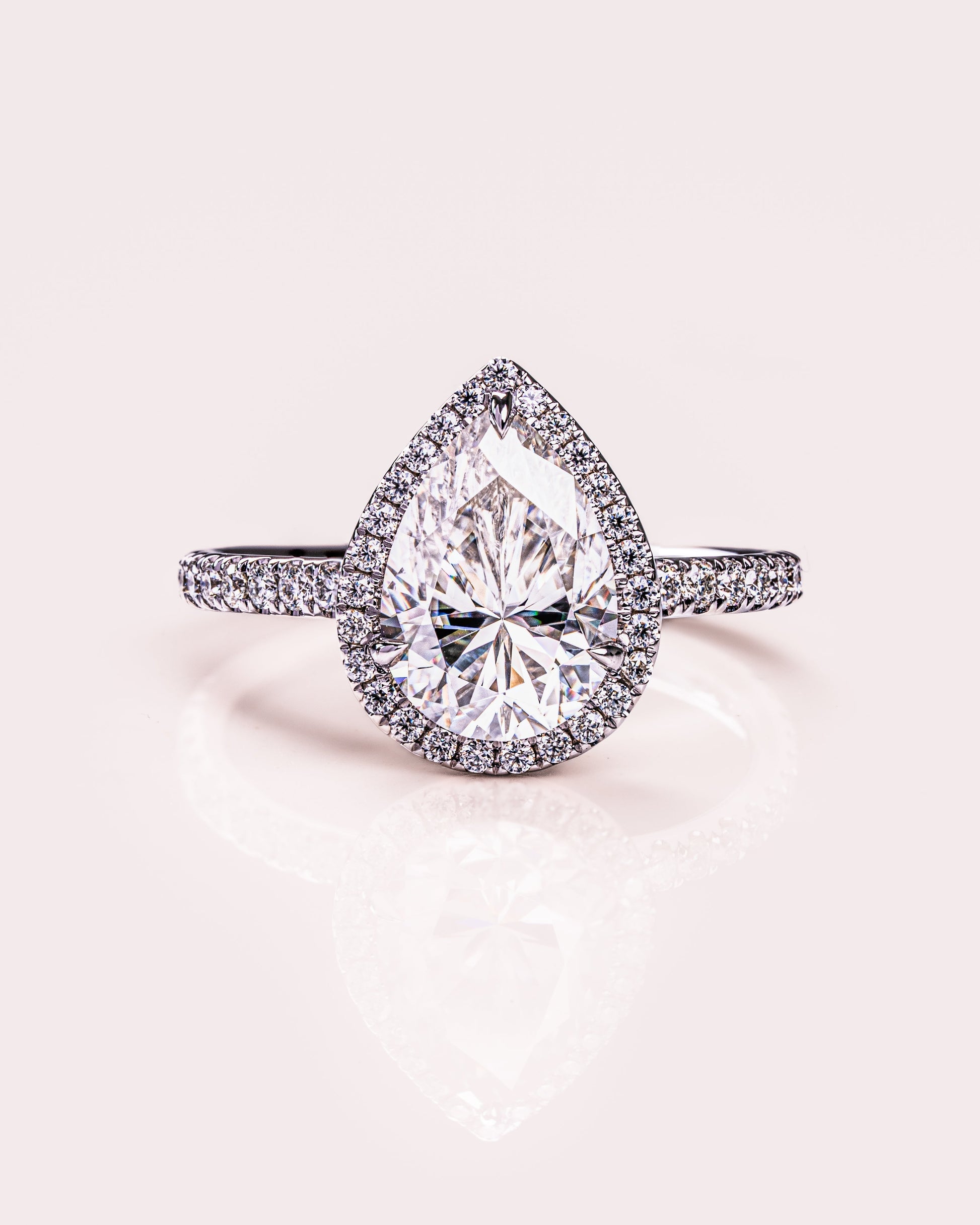 1.93 CT Pear Halo Pave Lab Grown Diamond Engagement Ring