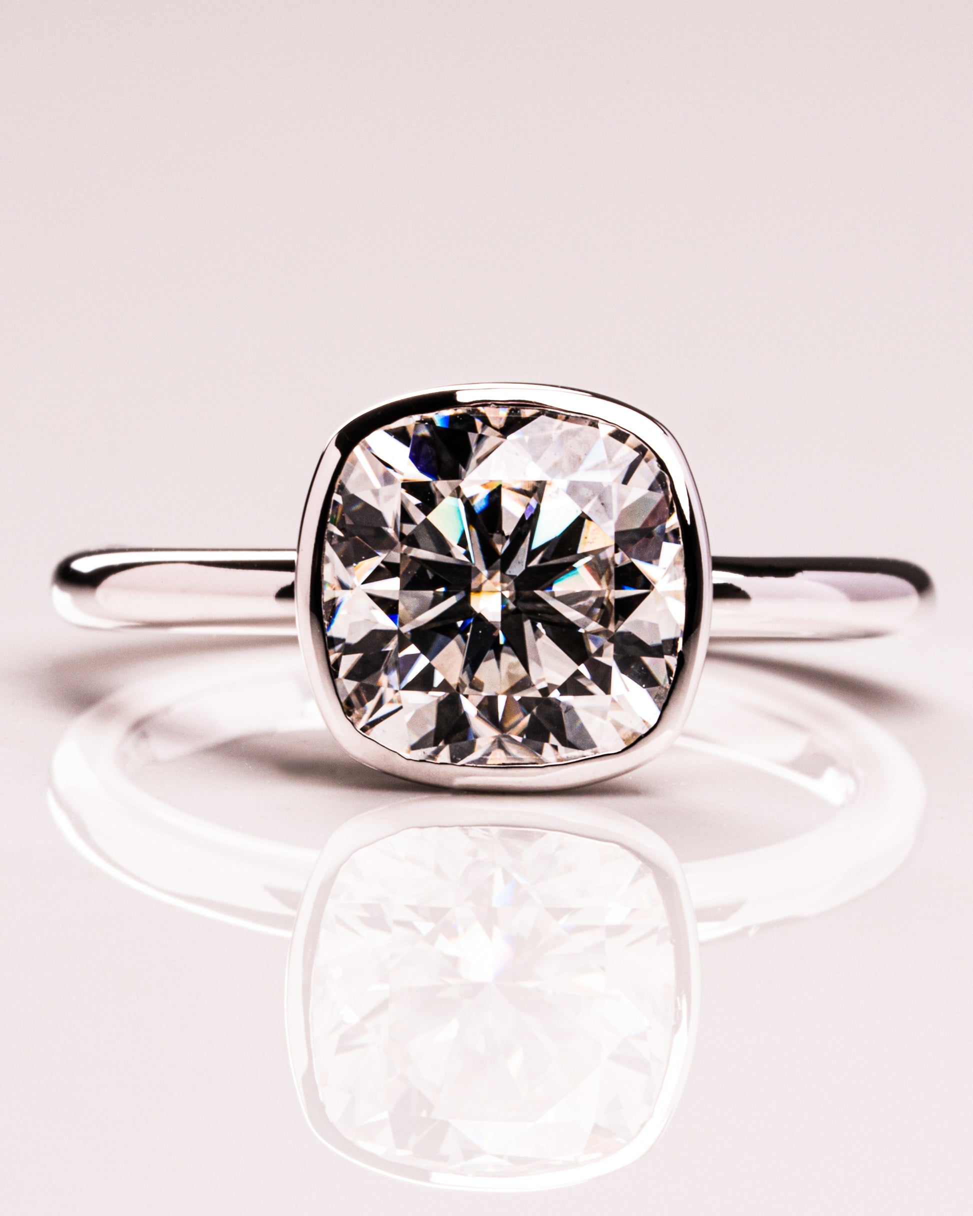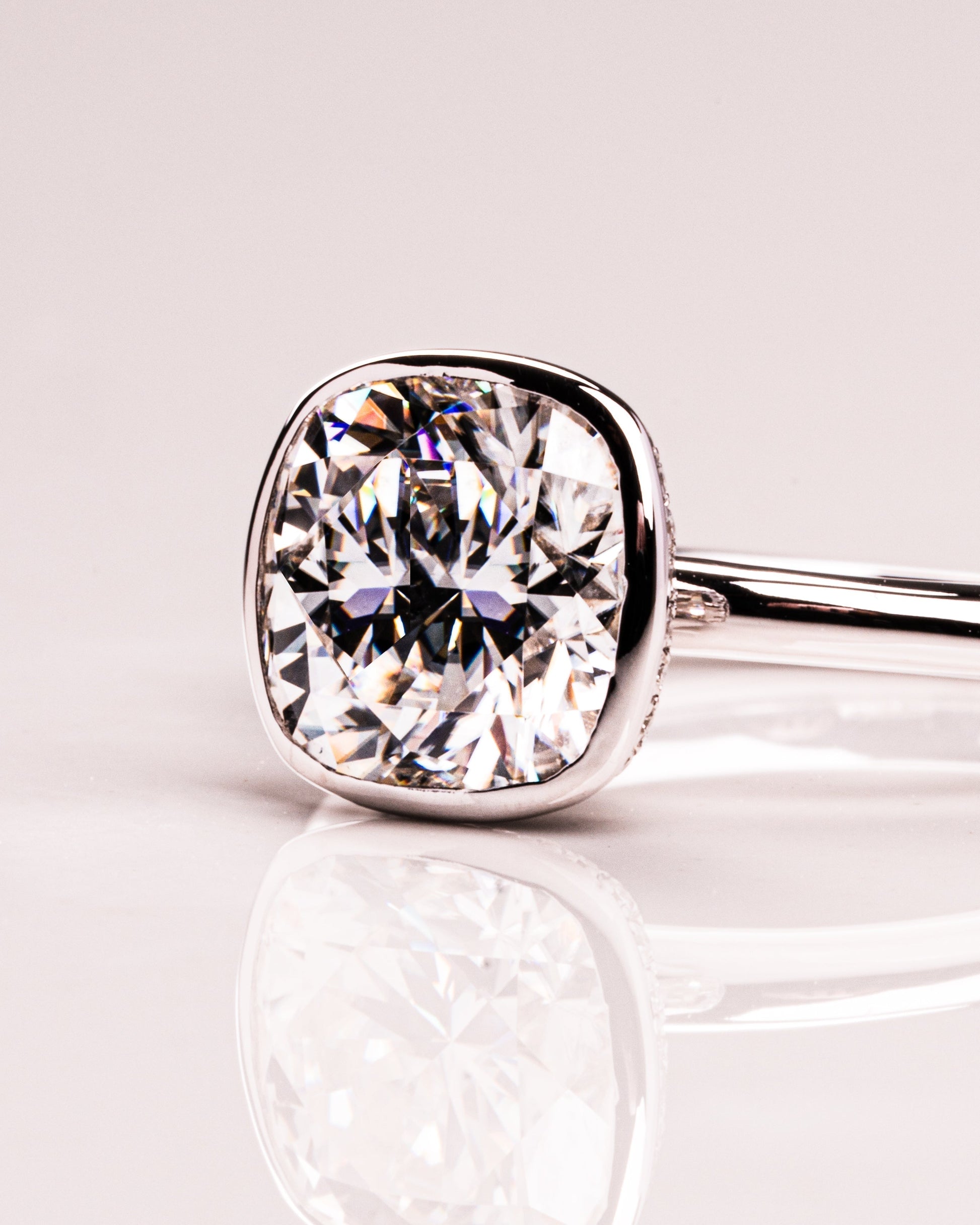 2.15 CT Cushion Hidden Halo Bezel Lab Grown Diamond Engagement Ring