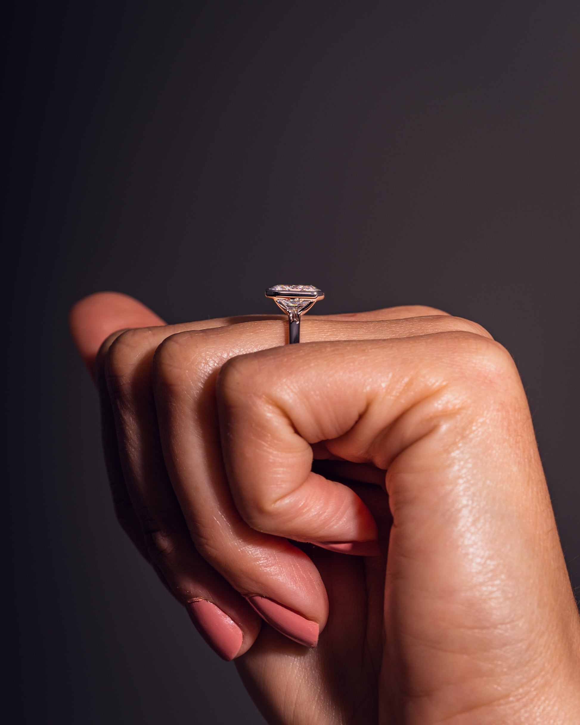 2.30 CT Emerald Cut Solitaire Bezel Setting Lab Grown Diamond Engagement Ring