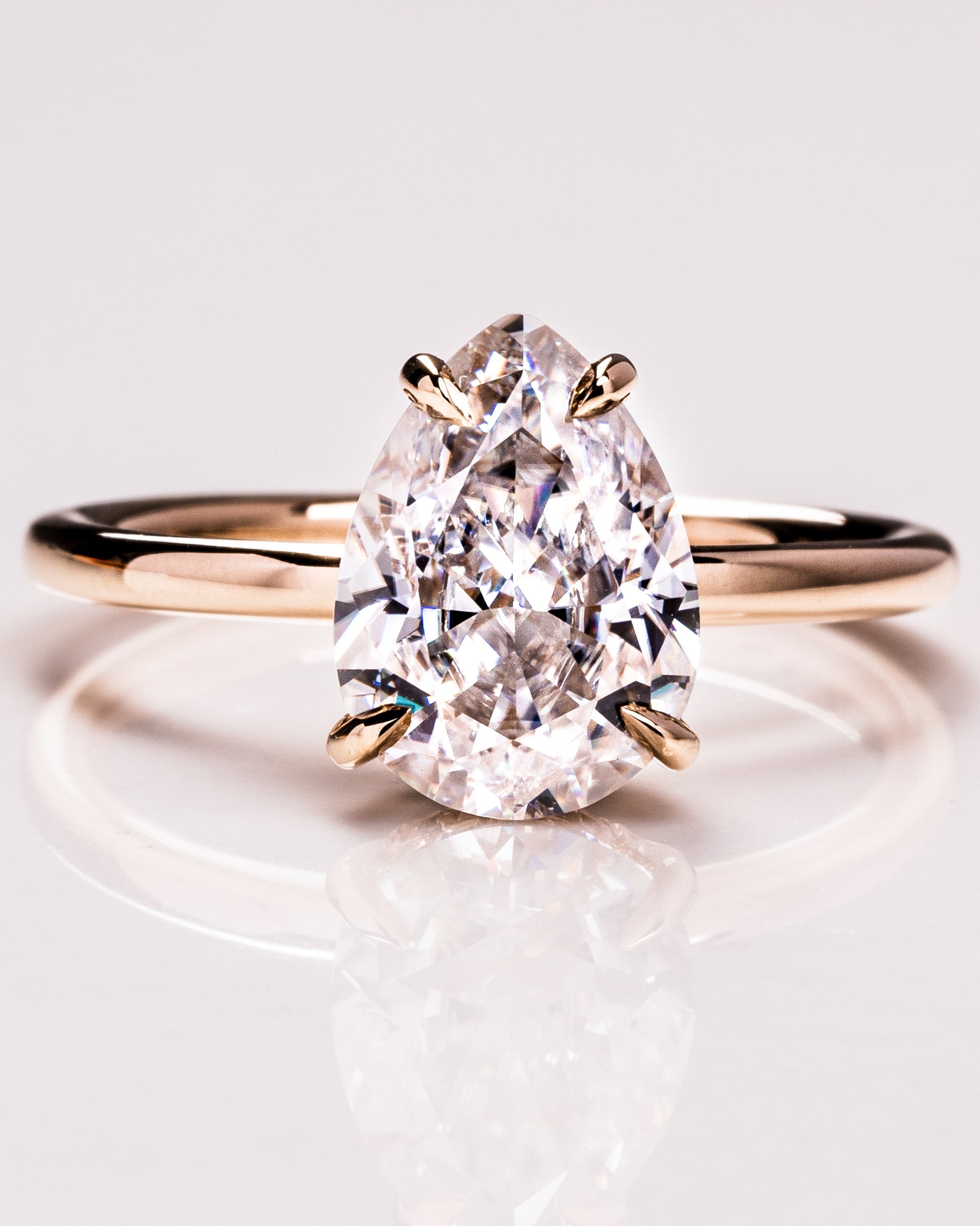 ✦ The Ring Shown in the Picture Holds a Beautiful 3.09 CT Pear Cut Lab Grown Diamond .