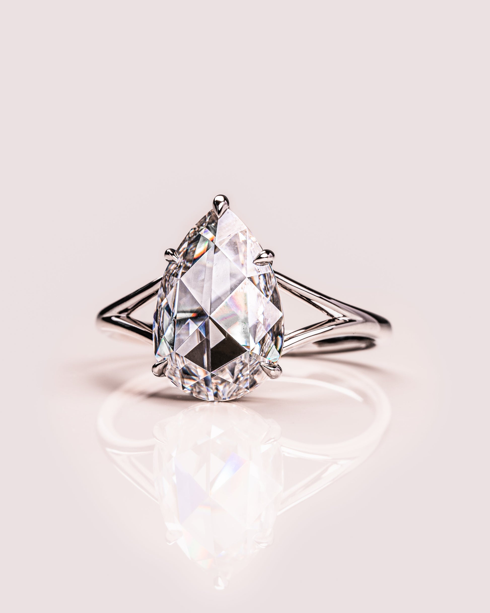 3.09 CT Pear Cut Lab Grown Diamond Solitaire Engagement Ring With Split Shank Setting