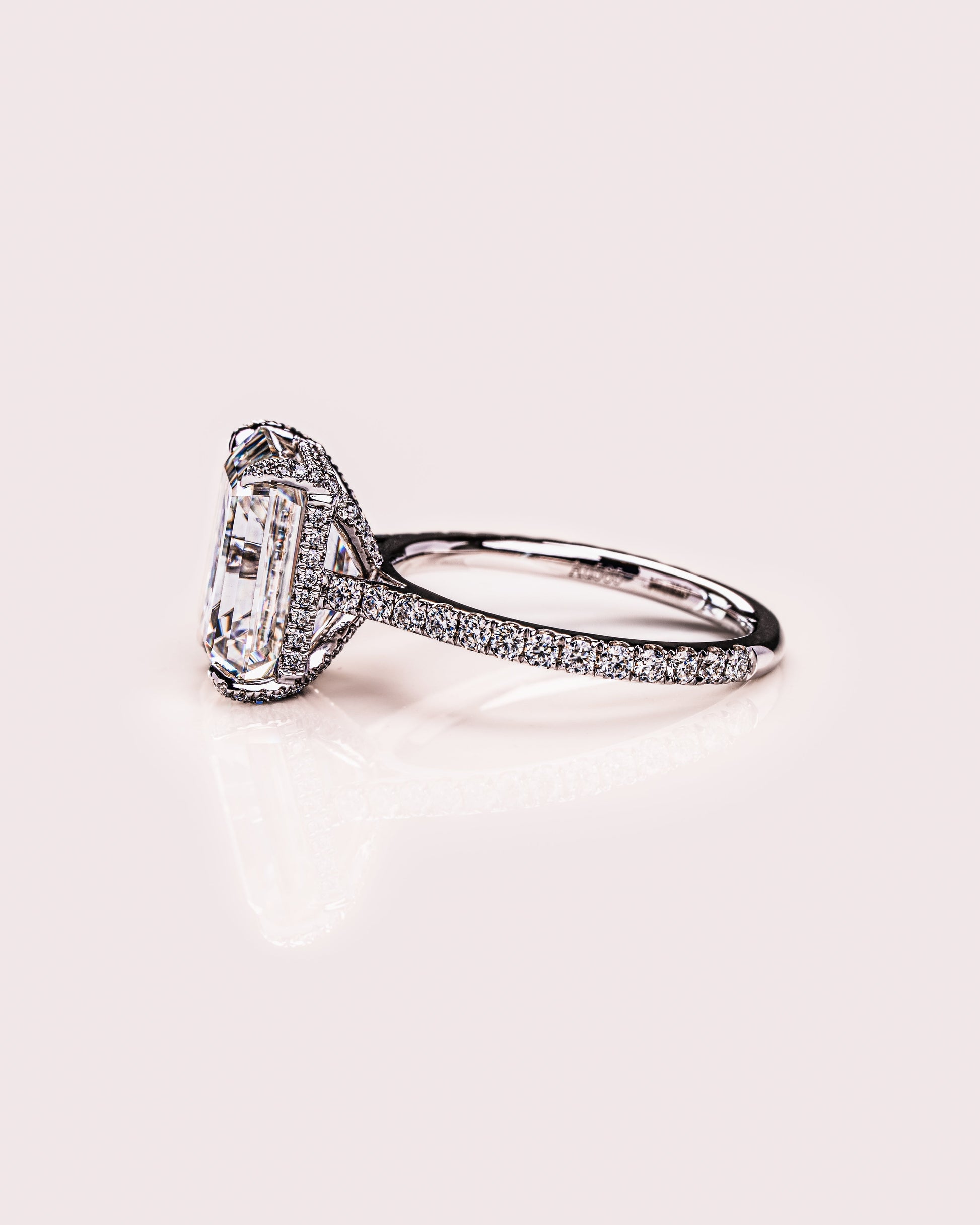 3.42 CT Emerald Cut Lab Grown Diamond Engagement Ring With Hidden Halo Setting