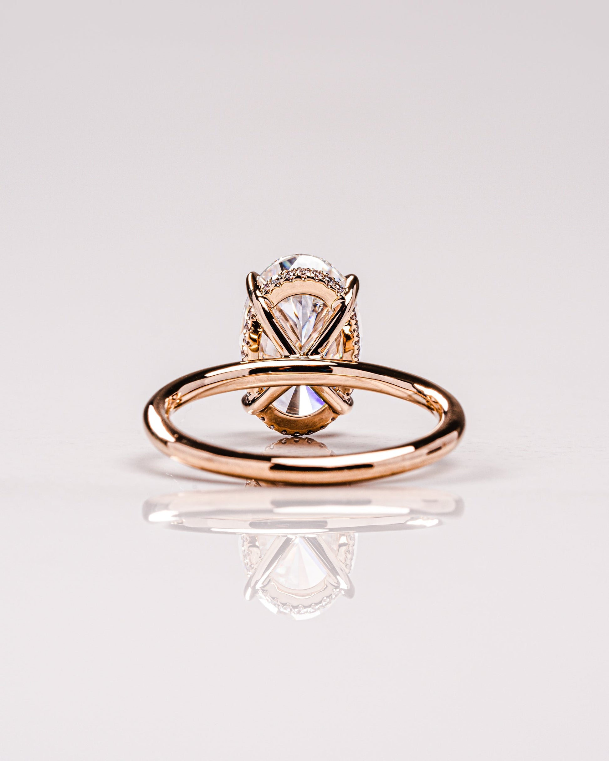 4.0 CT Oval Cut Solitaire Lab Grown Diamond Engagement Ring With Hidden Halo Setting