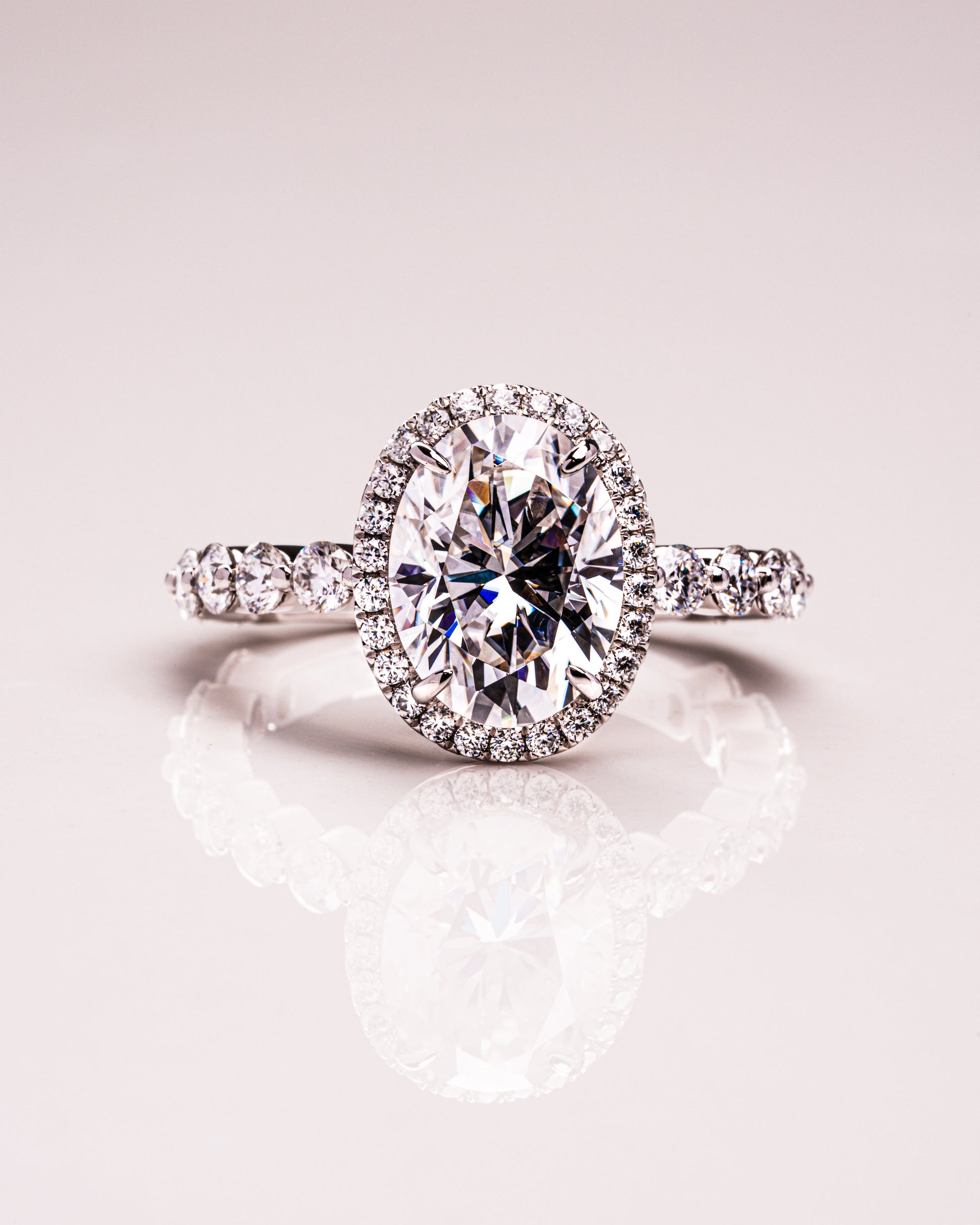 4.22 CT Oval Halo Pave Lab Grown Diamond Engagement Ring