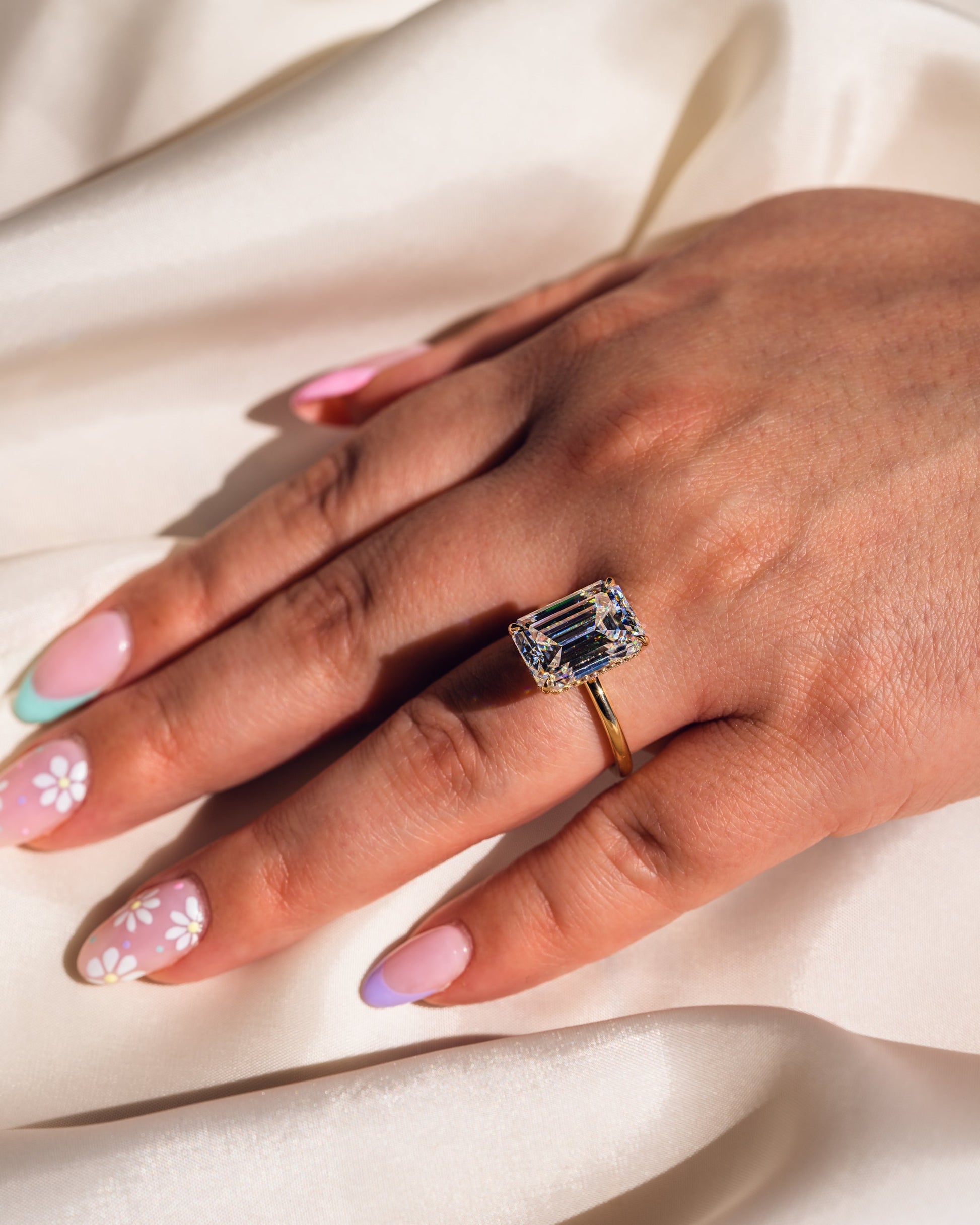 8.0 CT Emerald Cut Hidden Halo Lab Grown Diamond Engagement Ring